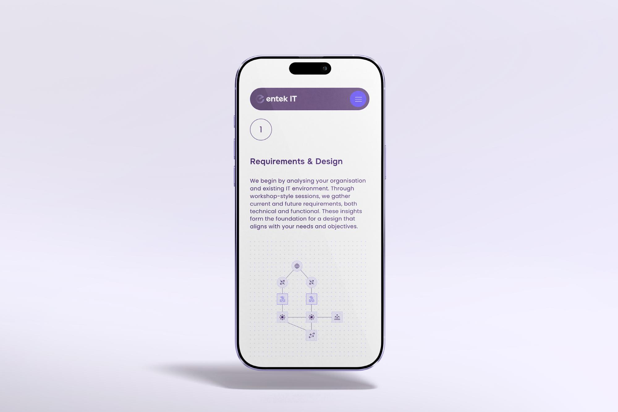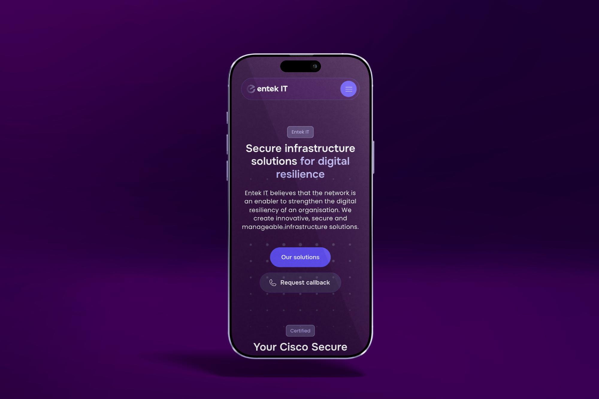 De website van Entek IT is een belangrijk middel om hun expertise en betrouwbaarheid te laten zien. Hij biedt bezoekers direct inzicht in hun diensten en kernwaarden, terwijl de duidelijke structuur vertrouwen en overzicht creëert. De visuele stijl, met paars-blauwe accenten, strakke typografie en subtiele ‘dots’-elementen, versterkt de merkidentiteit. De website verbindt hiermee techniek met menselijkheid en laat zien hoe Entek IT veilige, toekomstbestendige infrastructuren realiseert.